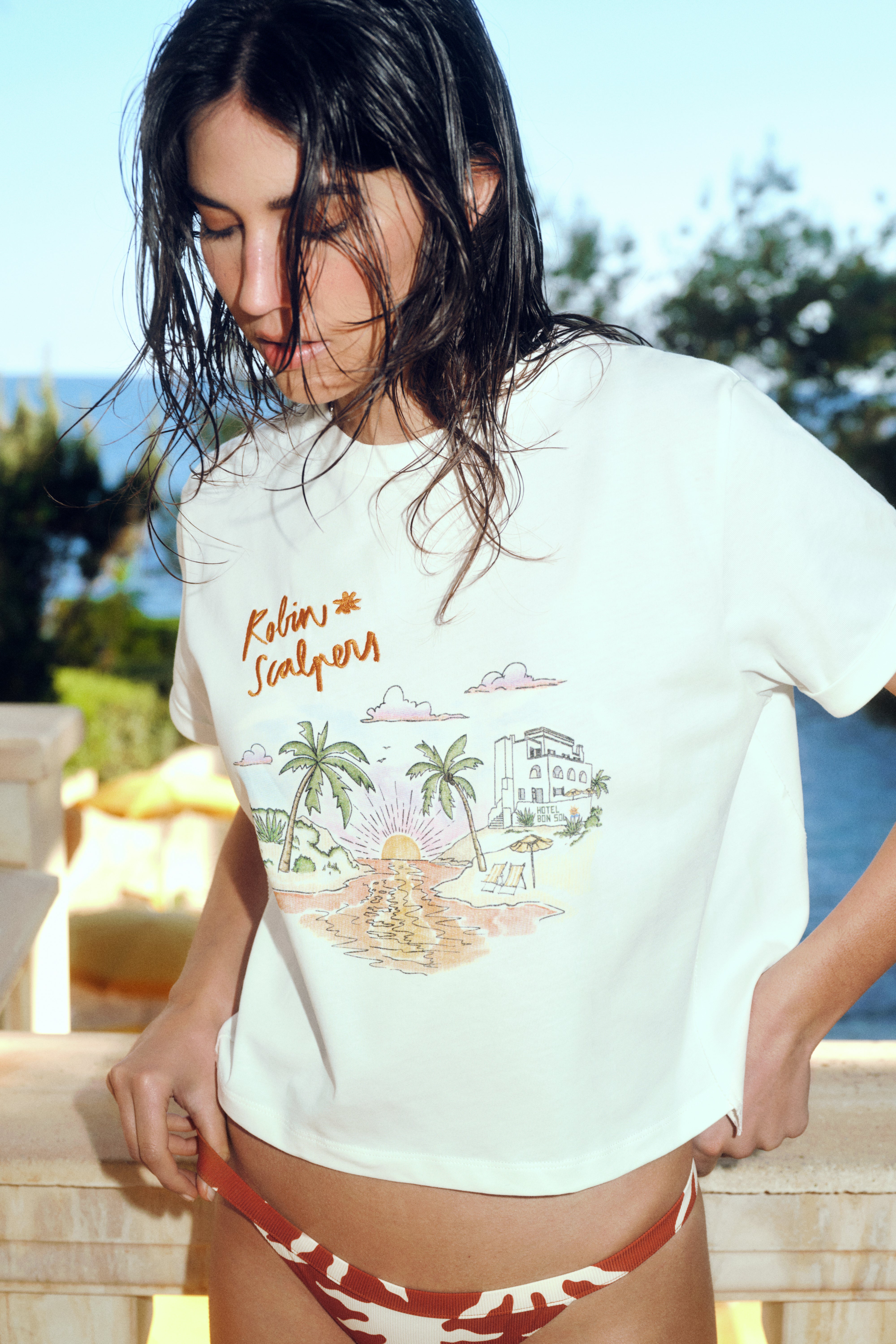 Ce bikini est une création issue d'une collaboration avec Scalpers et fait partie de la Robin Collection x SCALPERS. Cette collection réunit deux marques avec l'ambition de transmettre une vision nostalgique de l'été méditerranéen à travers chacune de ses pièces.